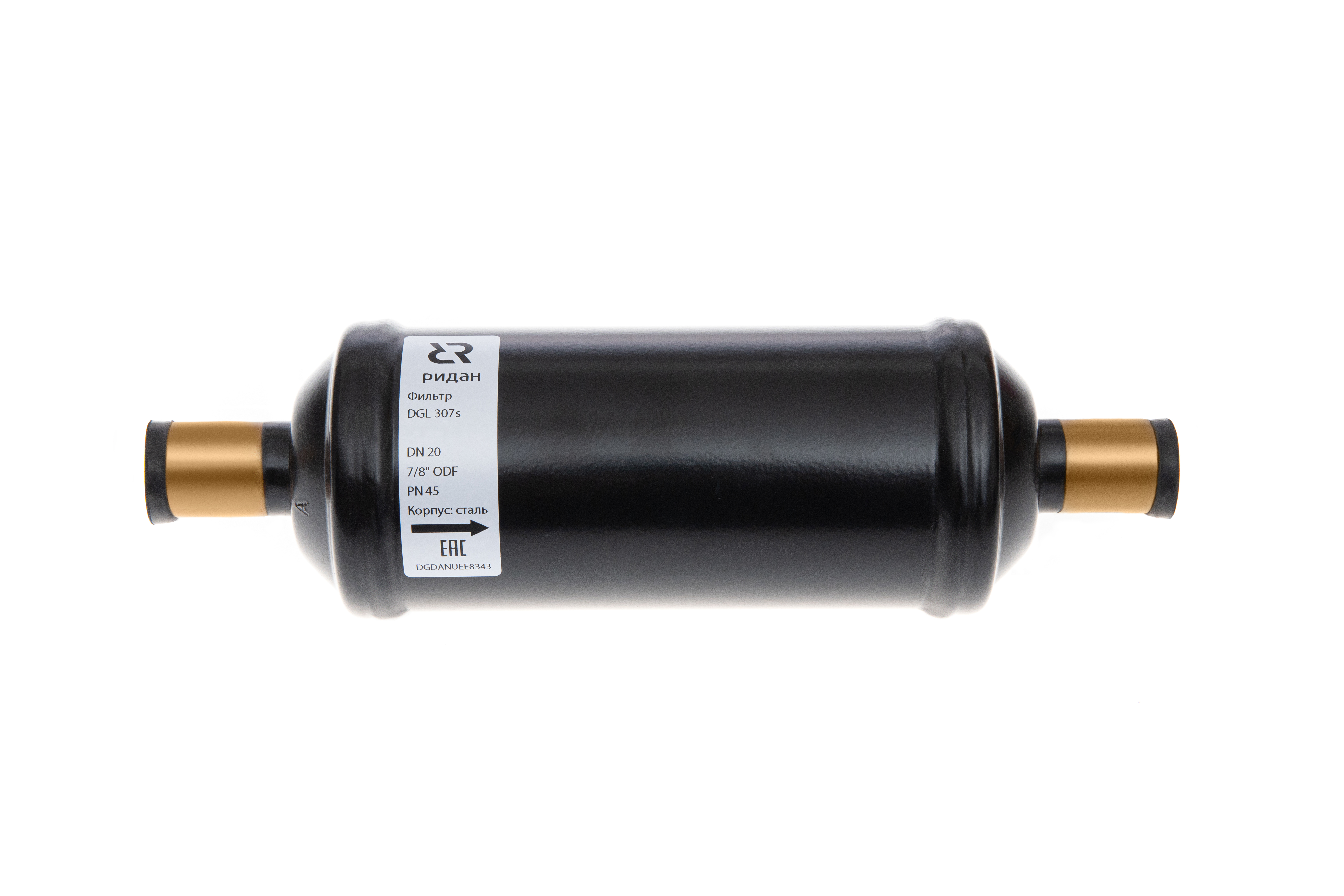 Ридан 023B8025R — Герметичный фильтр-осушитель с шариковой засыпкой DGL 307s, присоединительные патрубки 7/8", под пайку