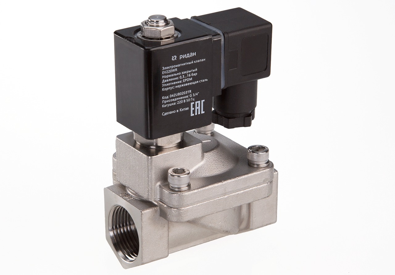 Ридан 042U804016R — Клапан электромагнитный EV220WR, присоединение G 1 1/2, материал уплотнения EPDM, нормально закрытый, 0,3…16 бар, с катушкой 24 В, 50 Гц