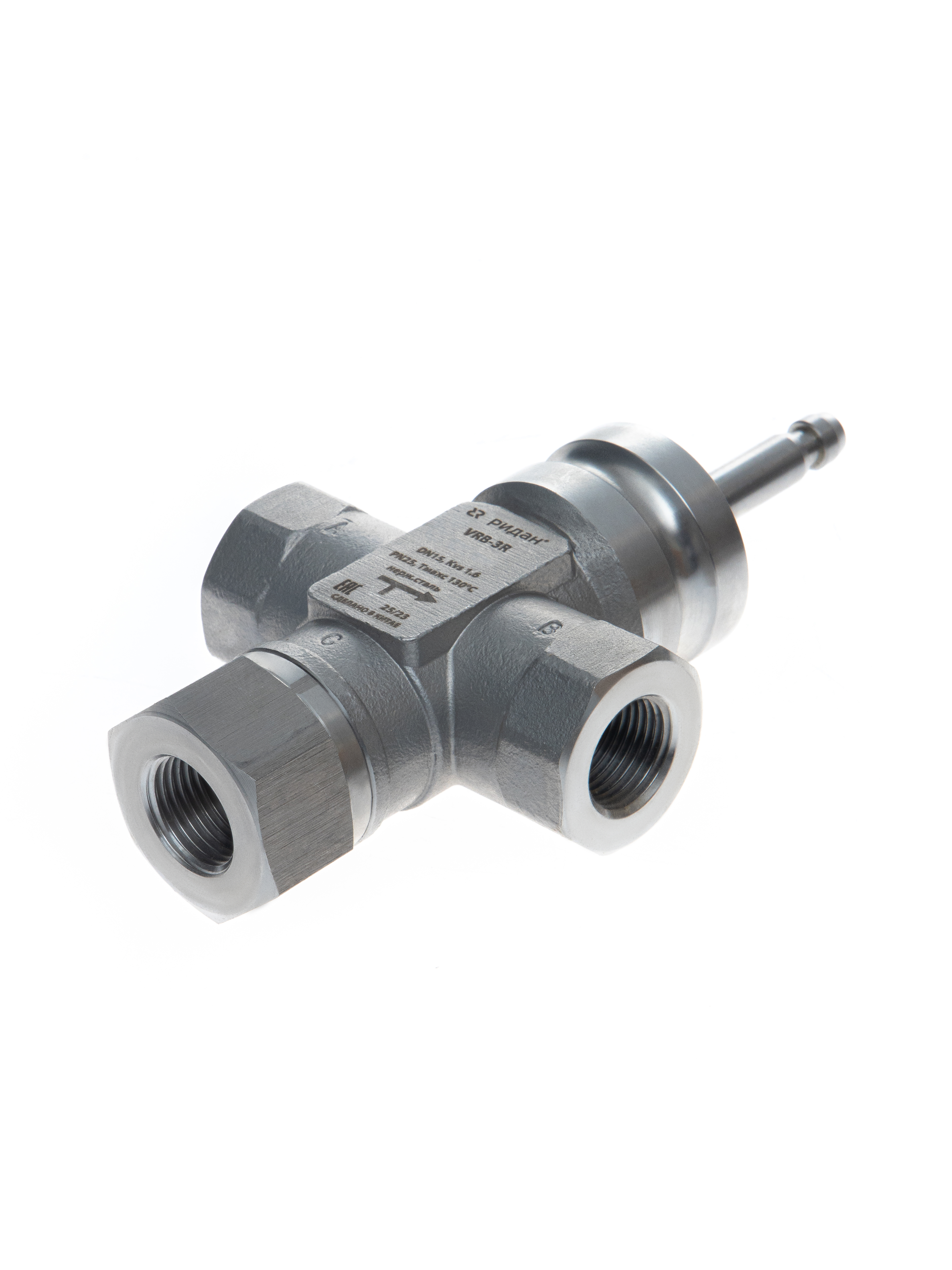 Ридан 065Z0211R — Клапан регулирующий с внутренней резьбой VRB-3R PN25, DN15, Kvs 0,63 м³/ч, трехходовой, седельный, внутренняя резьба, нержавеющая сталь