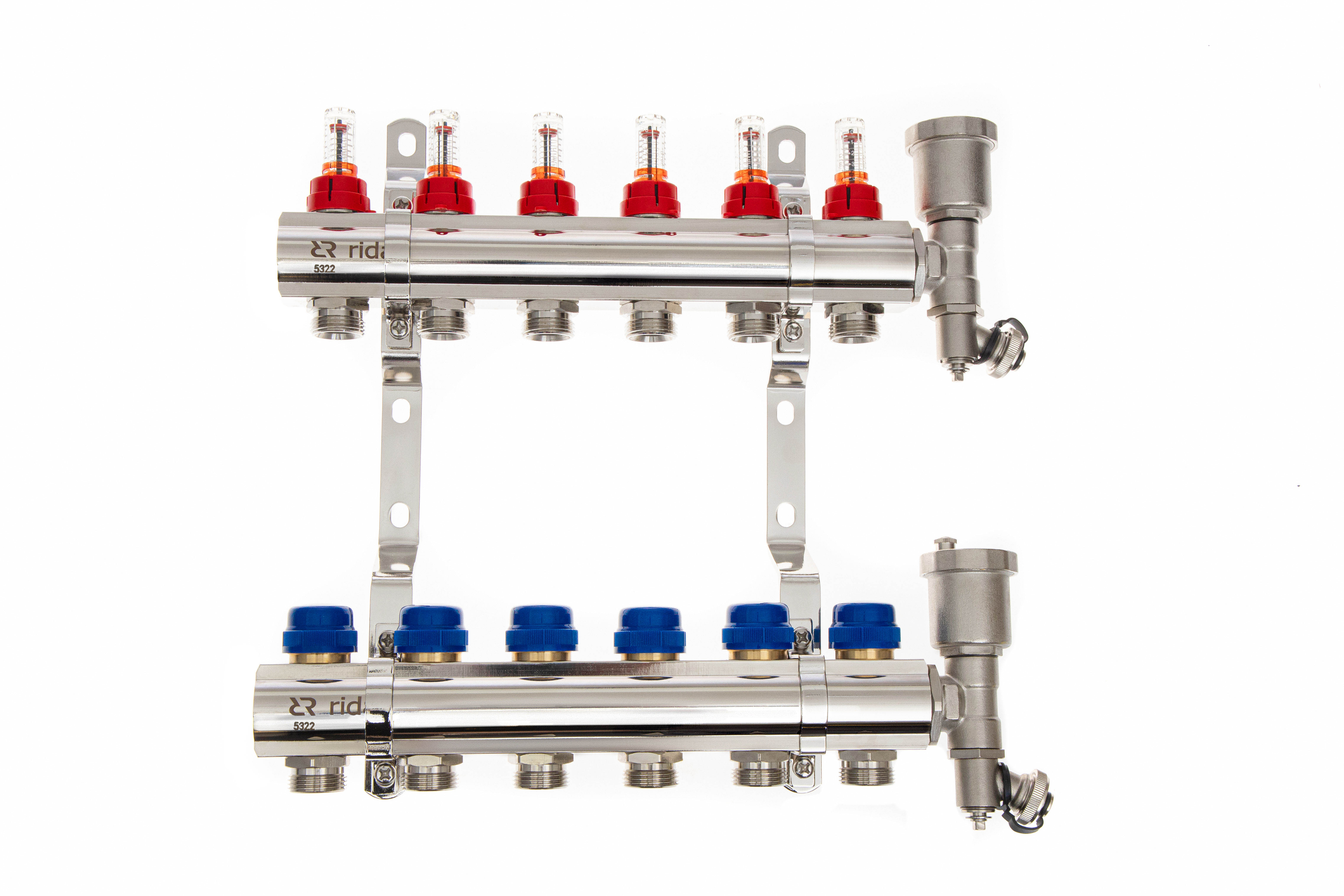 Ридан 088U0726R — Комплект коллекторов FHF-6RF set с расходомерами, кронштейнами и торцевыми секциями с автоматическими воздухоотводчиками, 6 контуров