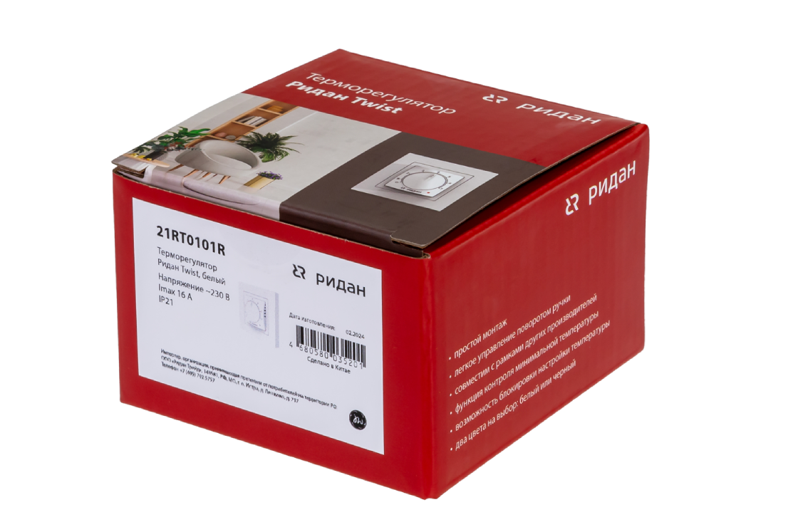Ridan 21RT1009R — Розничный комплект для теплого пола: нагревательный мат Ridan TF-150 6 м² с терморегулятором Ridan Twist (белый)